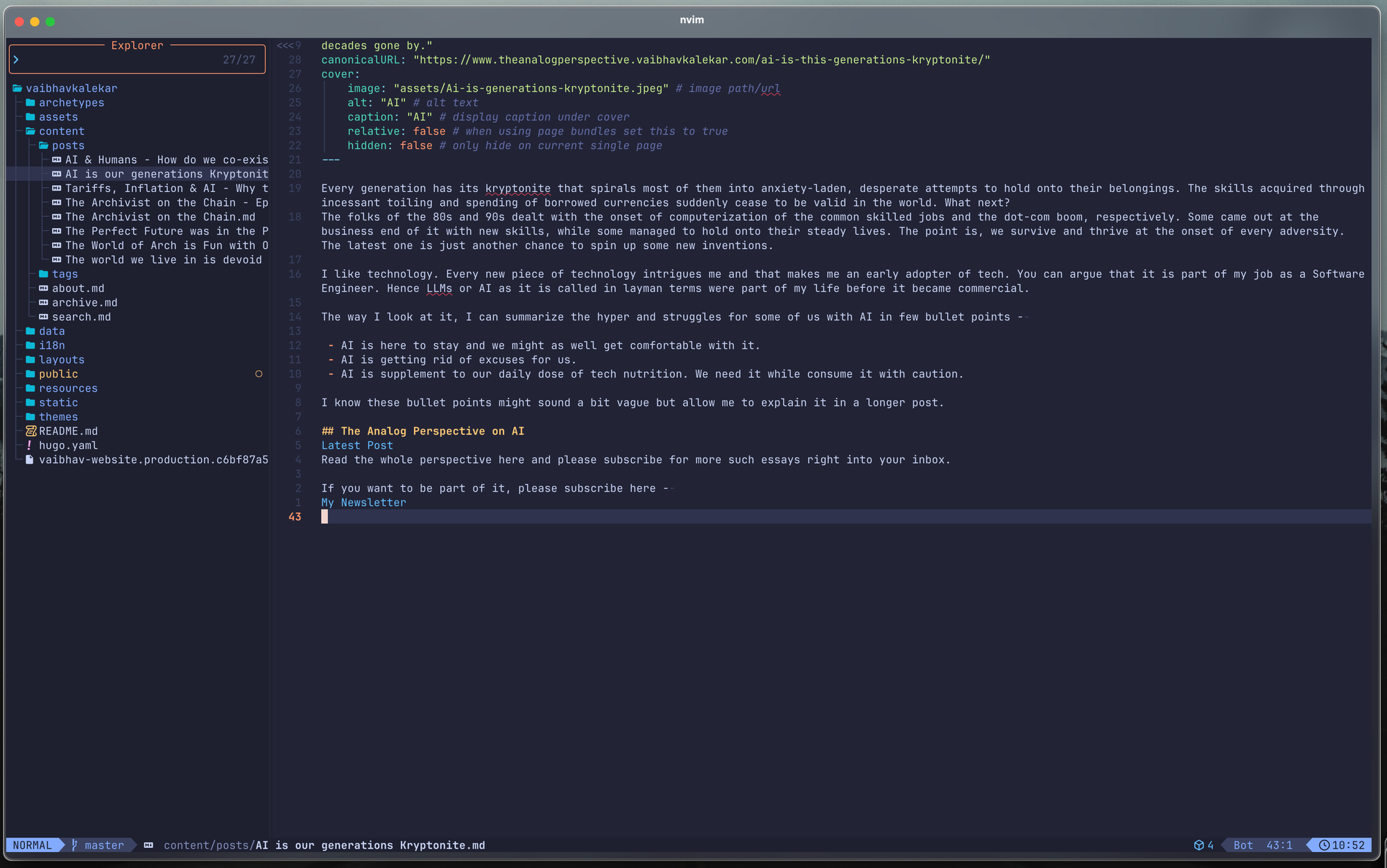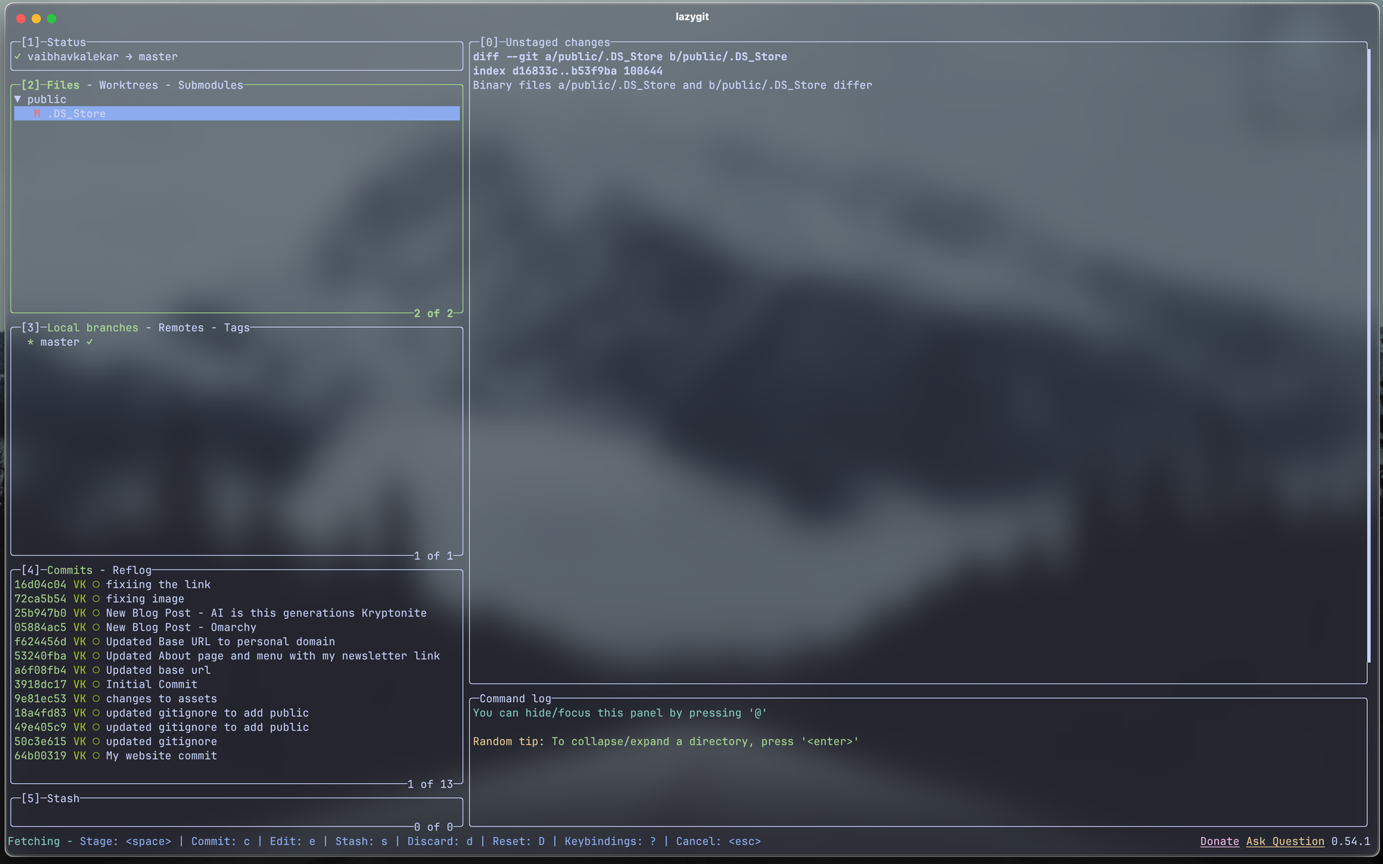 As I use lazyvim, obviously, I need something to push my changes to GitHub. Let's see how LazyGit looks to replace the usual four commands I use to push changes to my repository.
